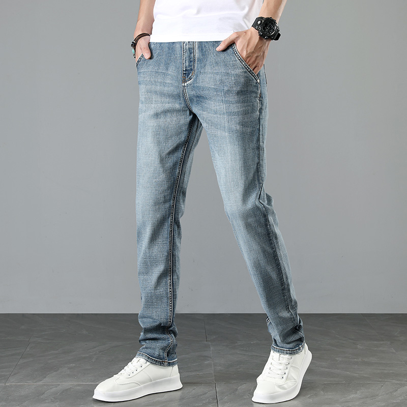 高腰设计,拉长身材比例。高腰牛仔裤,显瘦显腿长。直筒裤型,修饰腿部线条。