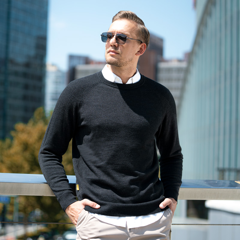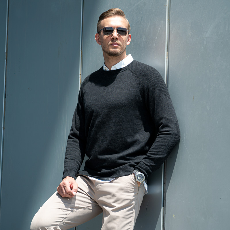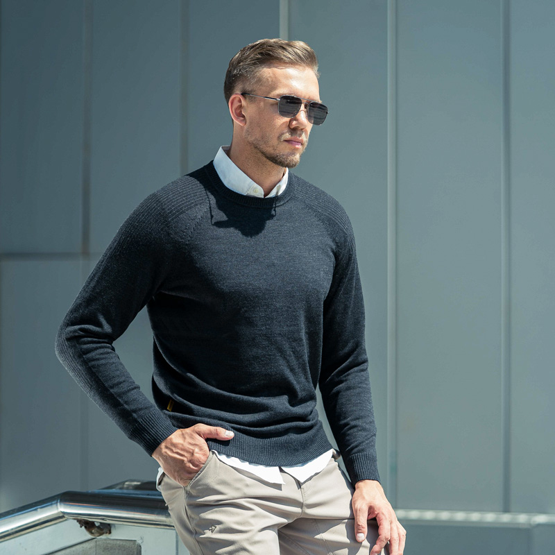 采用经典圆领的设计,修饰颈部线条,更显干练气质。