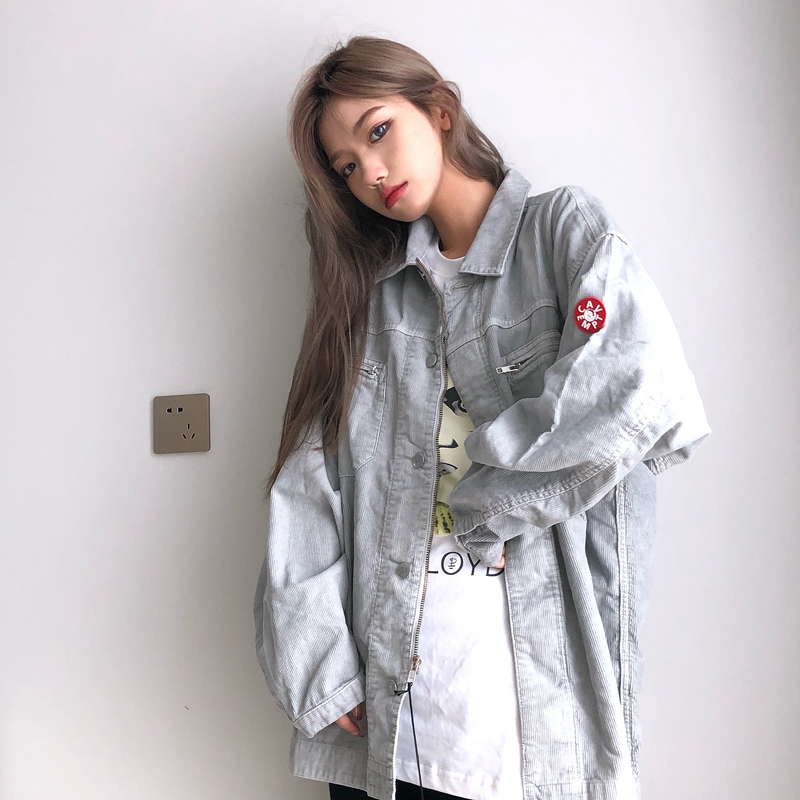 灯芯绒的材质,复古感十足,短款外套,拉长身材比例。
