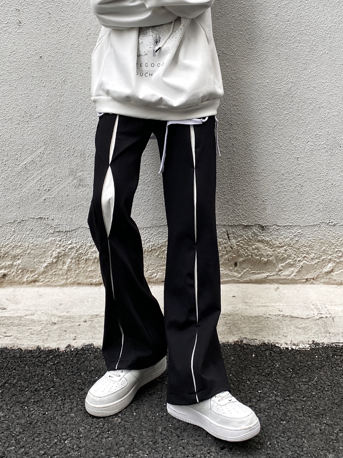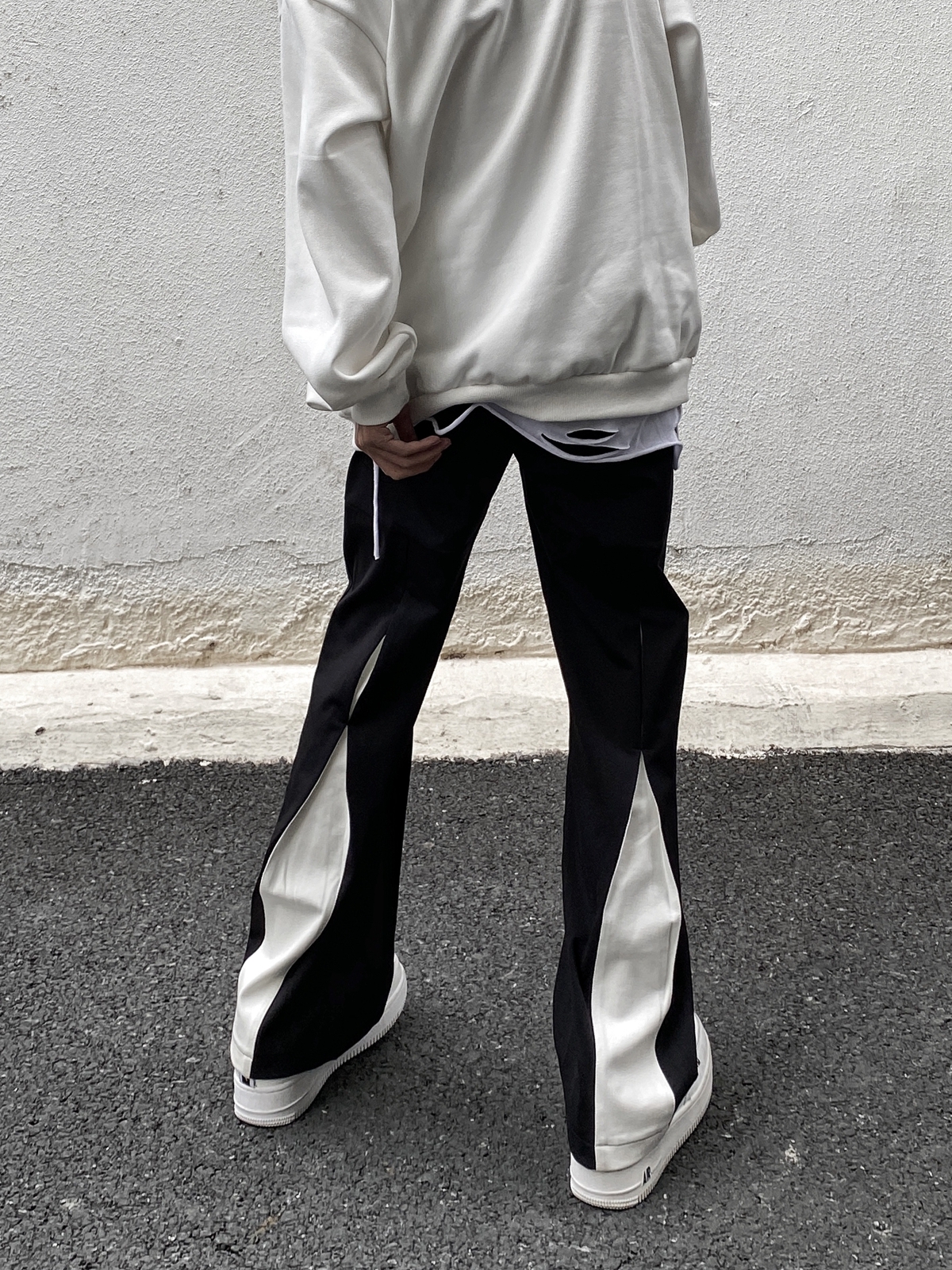 开叉的设计,彰显出与众不同的时尚感,穿上身露出白色调,更是增添了不少吸睛度,微喇阔腿的裤型,修饰腿型的同时,又带有一抹飘逸感。