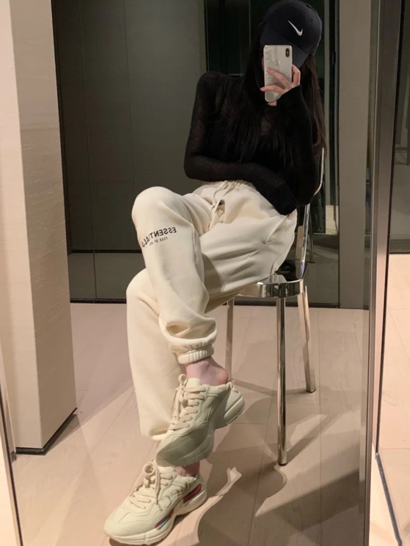 非常好穿的一条休闲裤,小宽松的裤型,舒适的面料,保暖性较好。结合字母印花图案,有种慵懒的感觉。还有系带设计,可以自由调节松紧度。