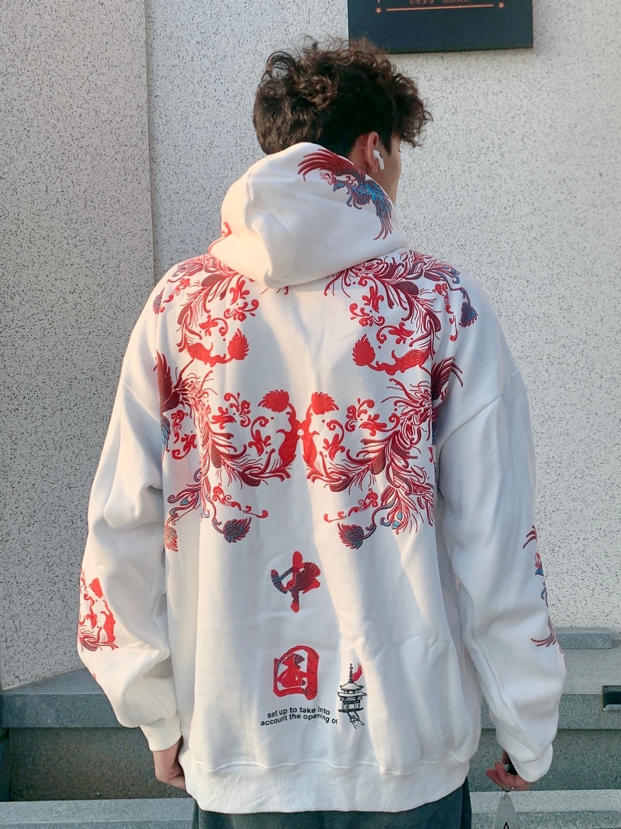 充满中国风气息的一款卫衣,连帽设计与收紧袖口,经典的防风保暖组合,搭配加绒设计,呈现温暖舒适的上身体验。