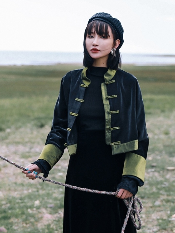 充满中国风气息的一款外套,复古与现代元素的相互碰撞,营造出独特的时尚气息,上身很是吸睛惹眼。