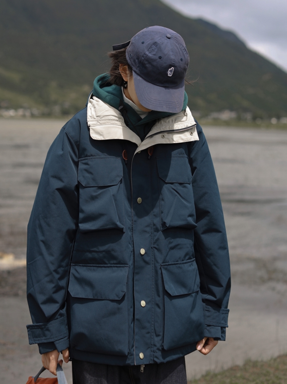 夹克采用多口袋设计,衣身采用多个口袋装饰,可以存放随身携带的物品,同时也可以满足户外工装需求。采用oversize版型设计,增强了衣服的包裹性。