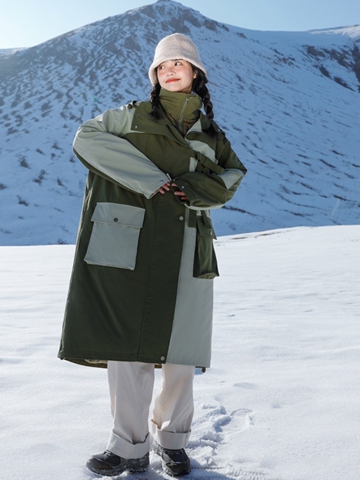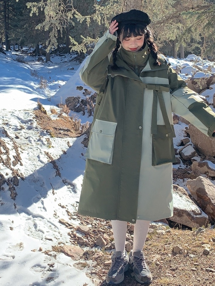 面料非常舒适,很轻柔,版型也好看,上身很有型,颜色面料拼接,超级具有立体感的哦,门襟和暗扣和拉链设计,方便穿脱,中长款设计非常好看。本内容来