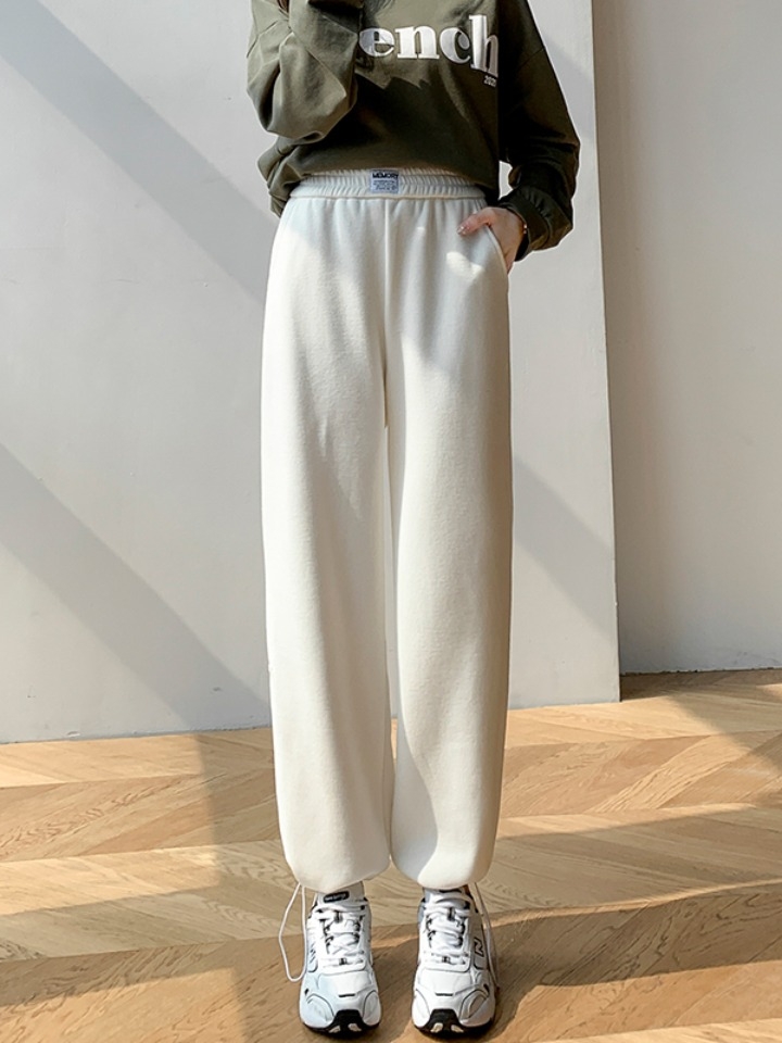 一款简洁的运动裤,有着简约的纯色以及宽松舒适的版型,松紧腰的抽绳设计很舒适,不松不紧的材质会有更舒适的感受。束脚的设计让这款运动裤变得时尚又修身。