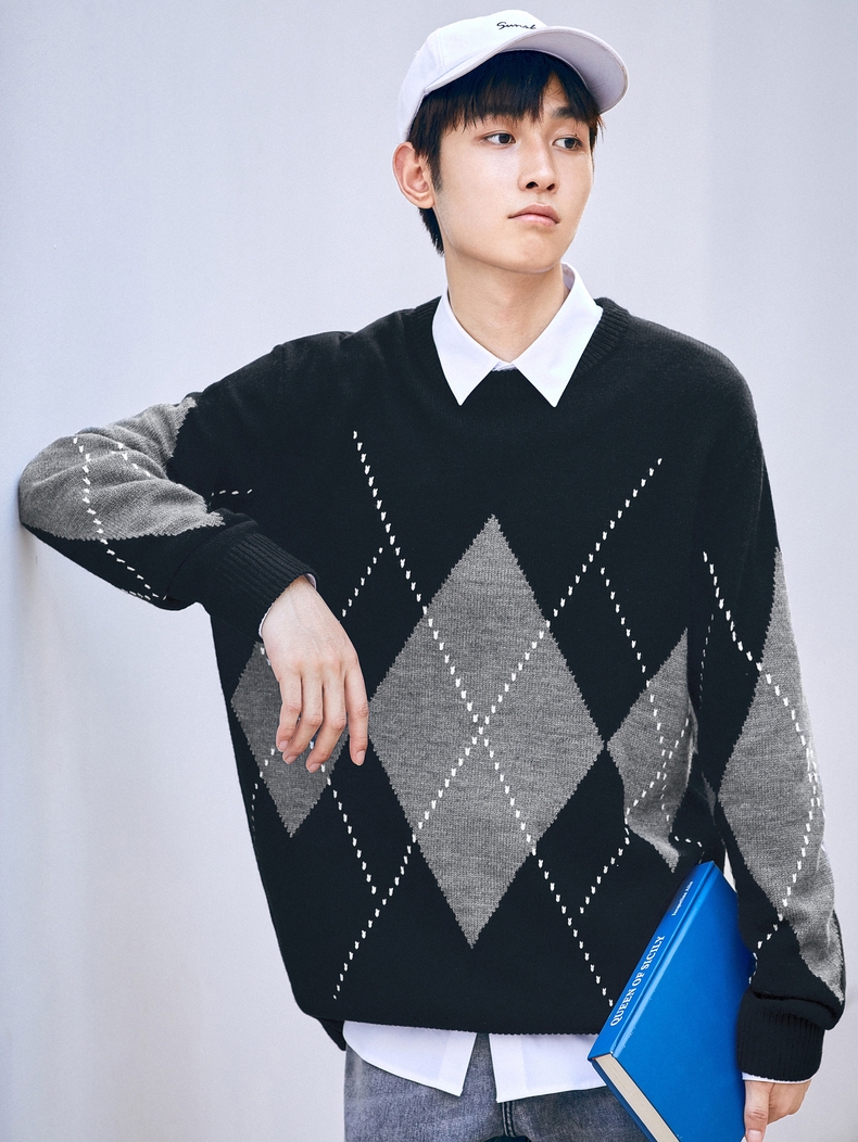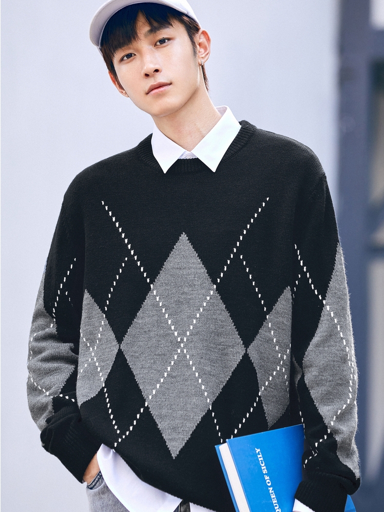 纹理增加保暖千鸟格图案以三种彩活跃展现,常见于西装西服的千鸟格纹在设计师独特的设计理念的指导下,丰富的穿搭层次感减少针的透风度经典款使用亚克力纤维织成,放大后被运用在本款针织衫上,保证个性不撞衫千鸟格精致而又优雅。