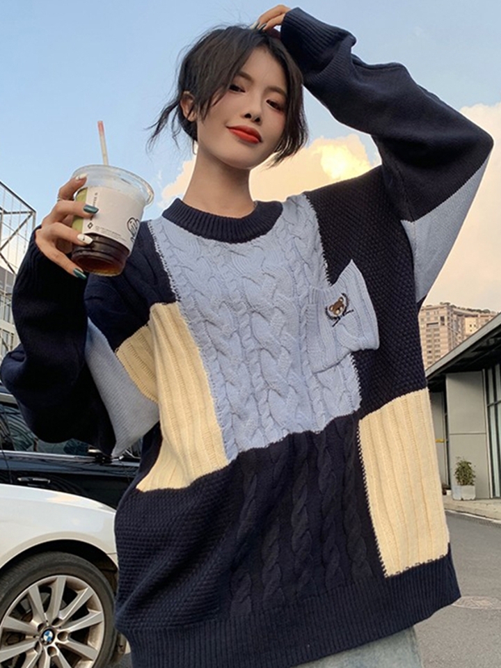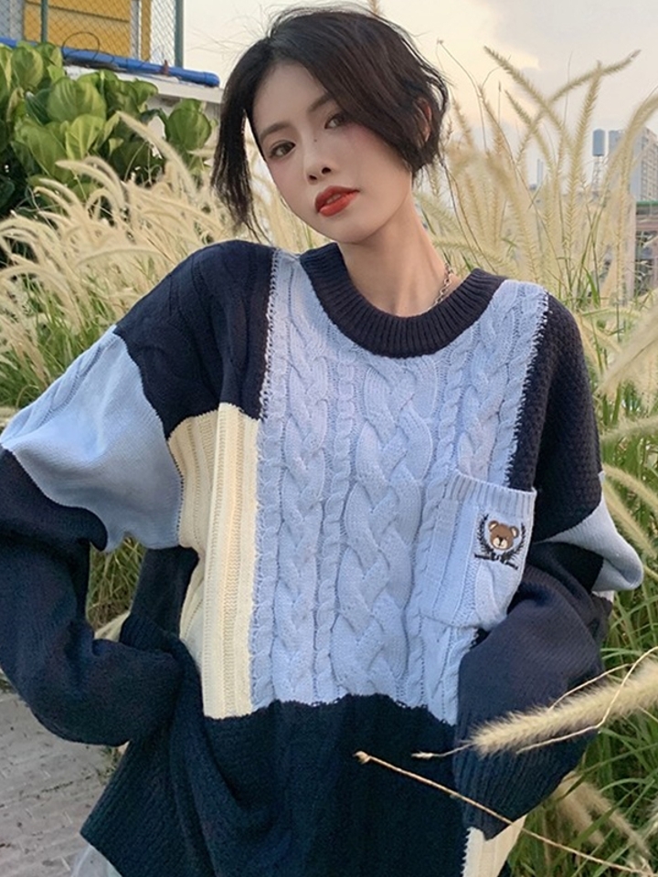 绵柔舒适的针织衫,在设计上,采用的是不同色块的拼接设计,分明的界面,满足强迫症的你们,柔软的面料穿着舒适。