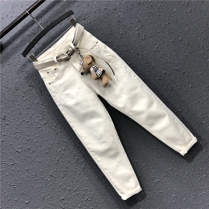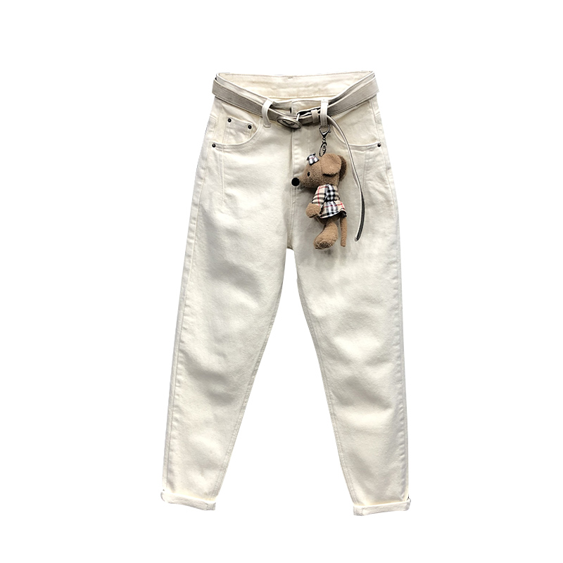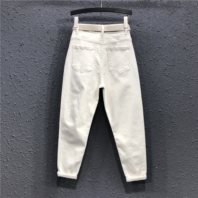 高腰设计,拉长身材比例。高腰牛仔裤,显瘦显腿长。直筒裤型,修饰腿部线条。