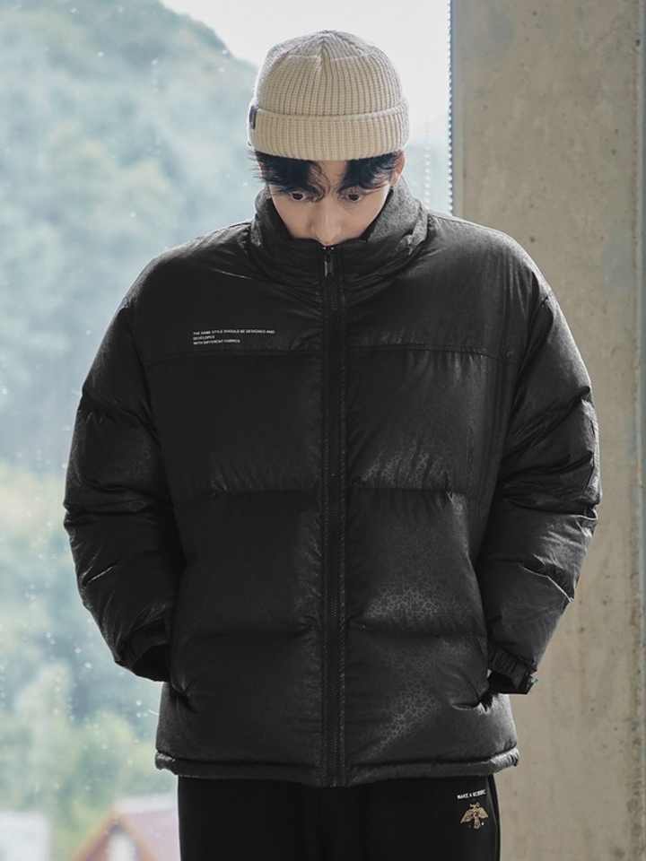 羽绒面料,采用暗花点缀,打破黑色的沉闷,增添了几分休闲个性的味道,搭配填充的优质白鸭绒保暖效果更佳。
