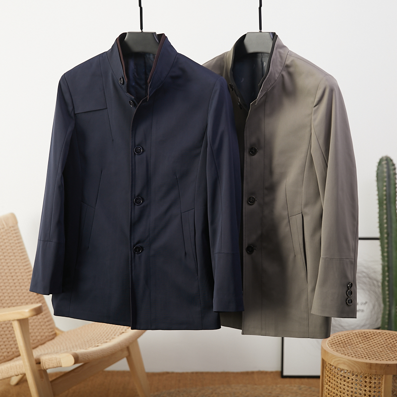 立领设计,修饰脖颈曲线,风衣版型设计,修身显瘦,纯色的色调,简约又百搭,宽松版型,穿着舒适自在。
