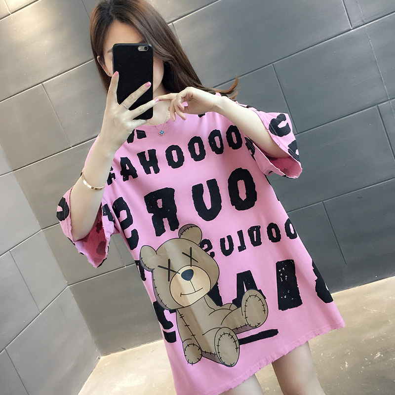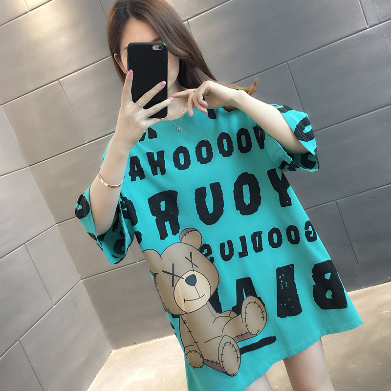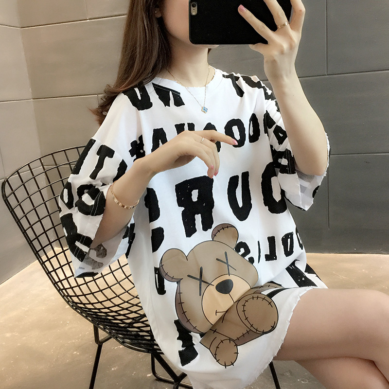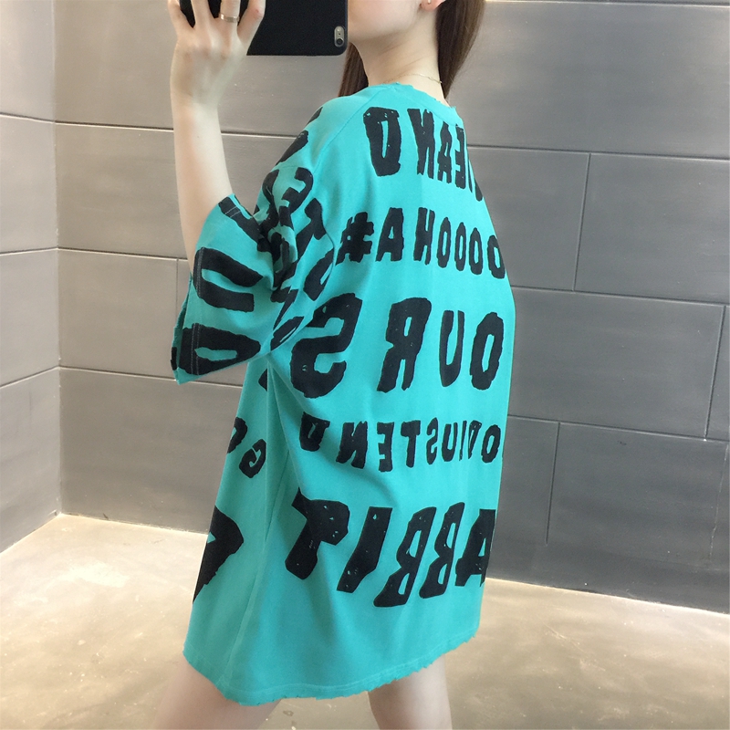这款t恤是简约的风格,宽松的版型,时尚百搭,胸前的字母印花,很有个性,搭配牛仔裤或者短裤都很好看。