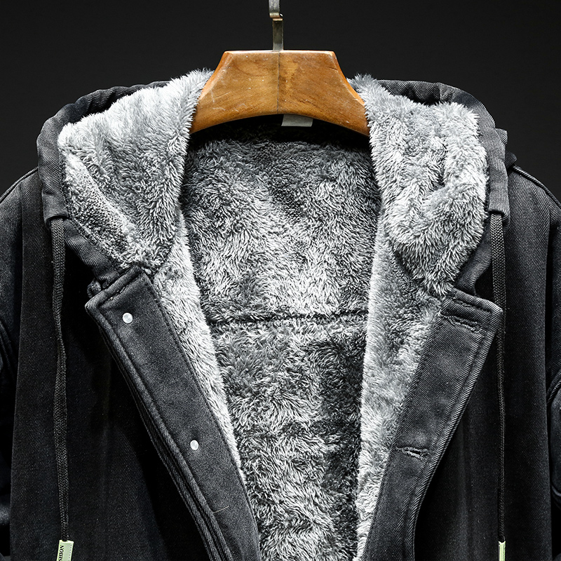 加绒材质,穿着舒适保暖,加厚厚实,保暖效果极佳,简约的款式,时尚又百搭,连帽设计,防风保暖性强。