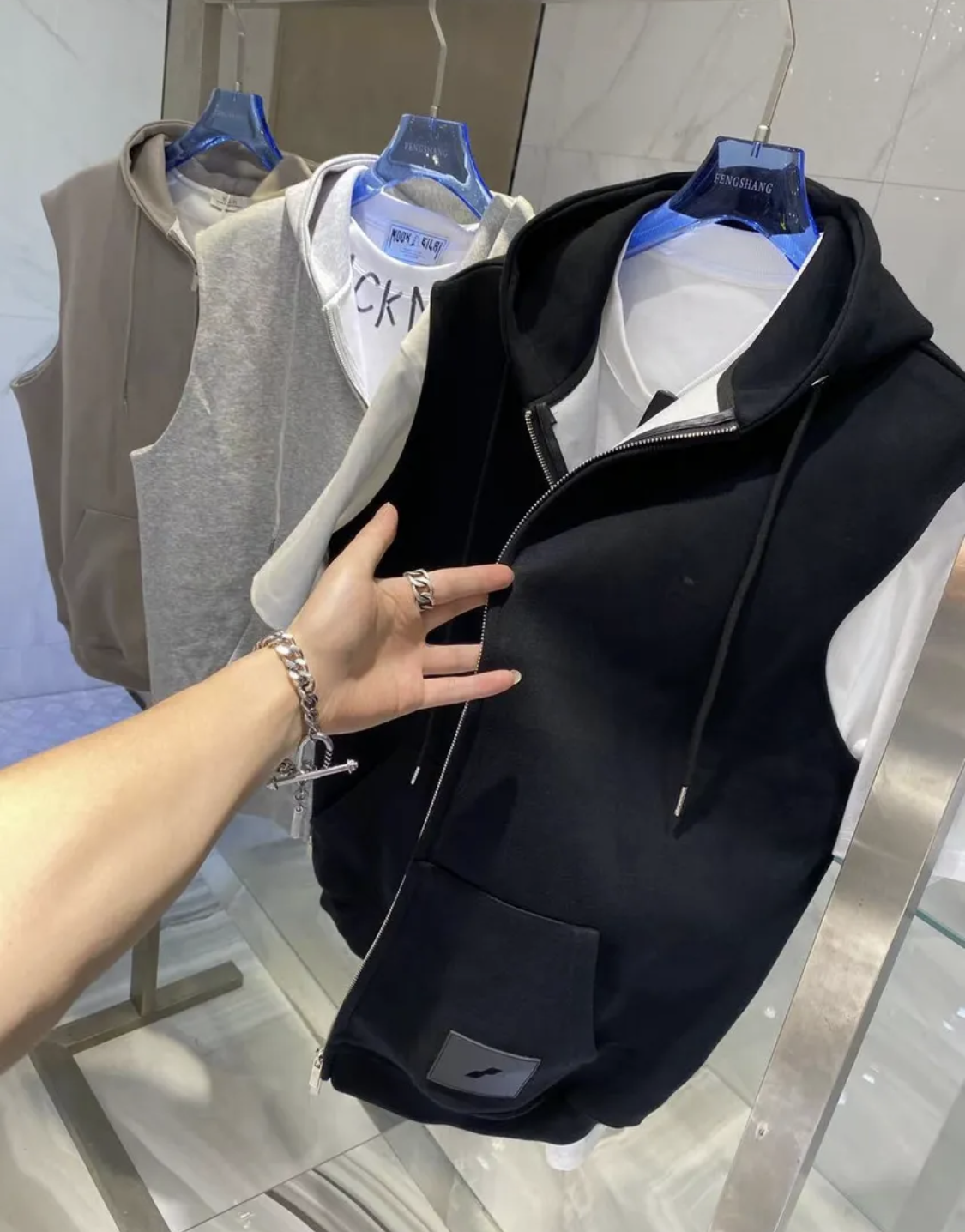 马甲版型,穿着无束缚感。无袖设计,修饰手臂线条。短款外套,拉长身材比例。