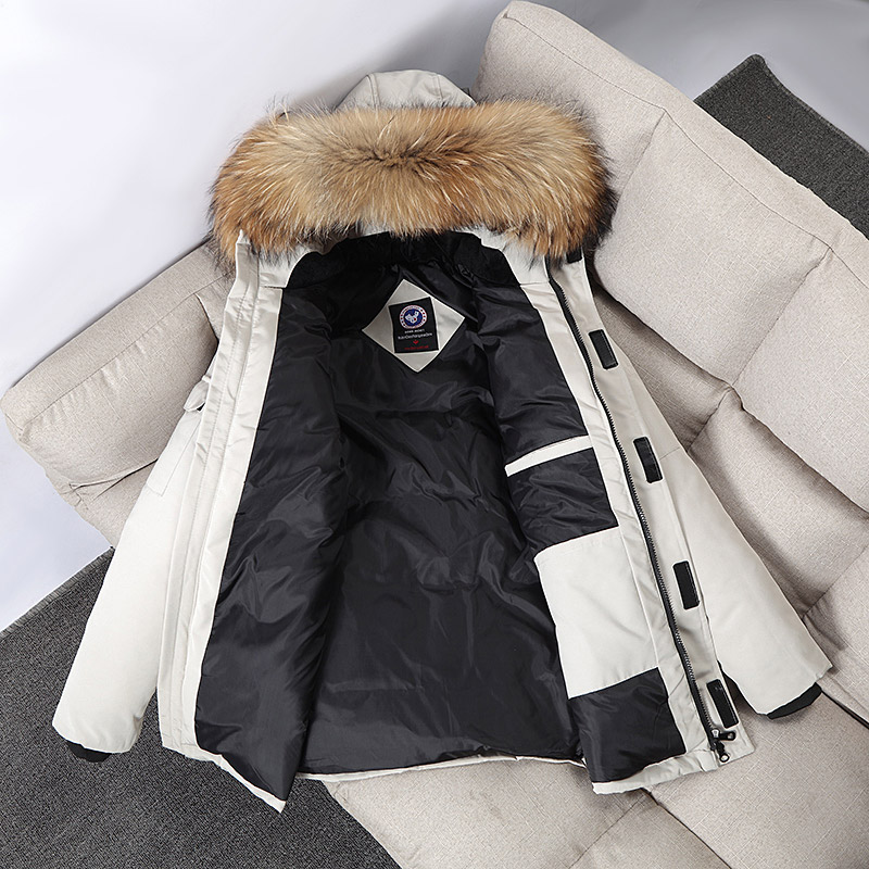 这款羽绒服采用了优质的羽绒面料,手感柔软舒适,保暖性好,连帽设计,更显时尚潮流。