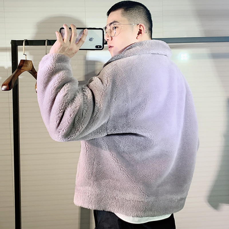 这款皮草外套采用了羊羔毛的材质,手感柔软,保暖性好,穿着舒适。
