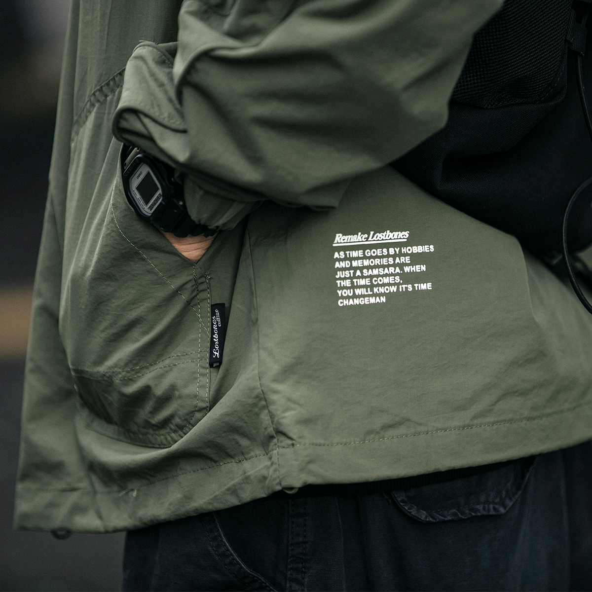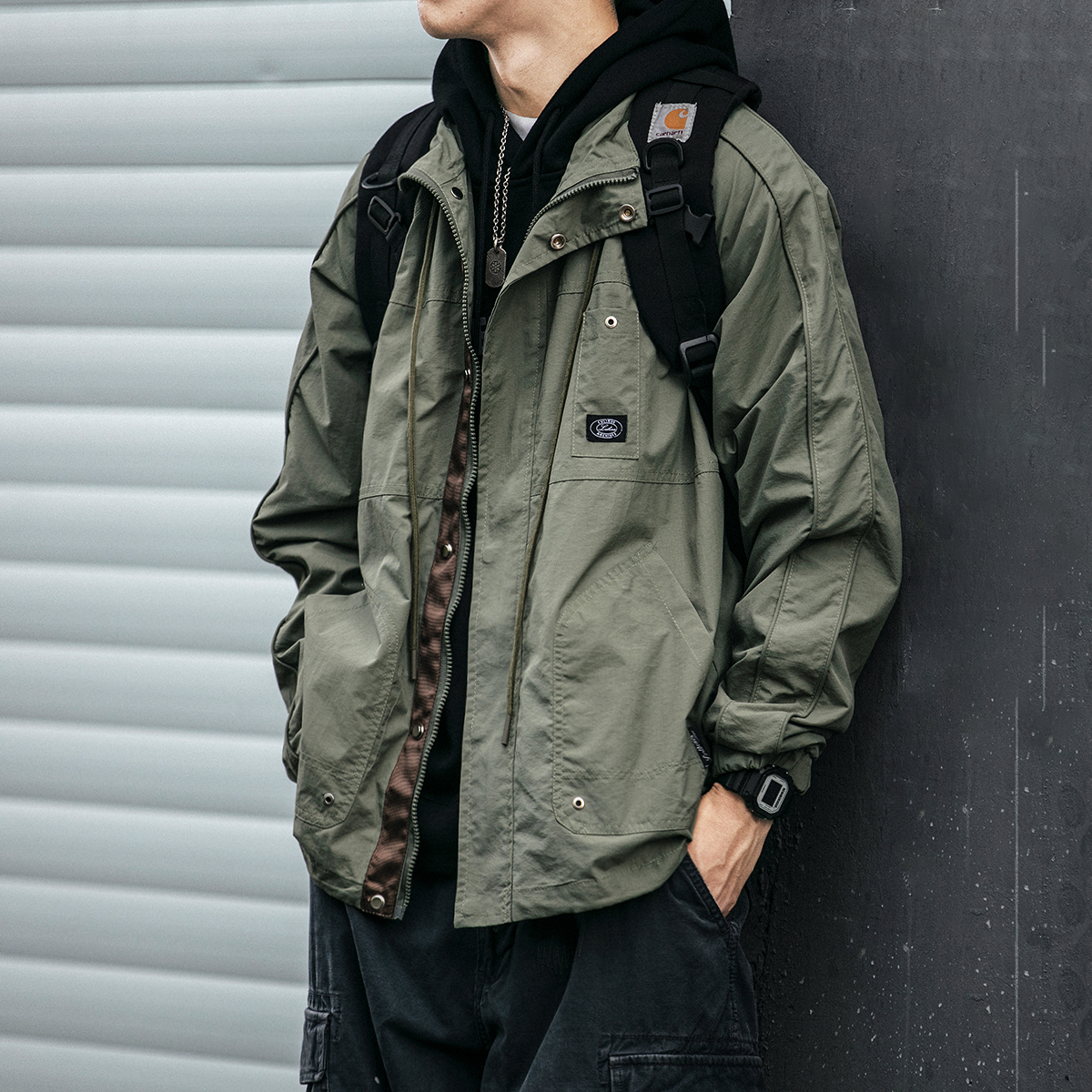 翻领设计,彰显男士魅力,日系复古风格,清新文艺,多口袋设计,工装风十足。