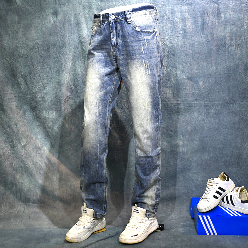 高腰设计,拉长身材比例。高腰牛仔裤,显瘦显腿长。直筒裤型,修饰腿部线条。