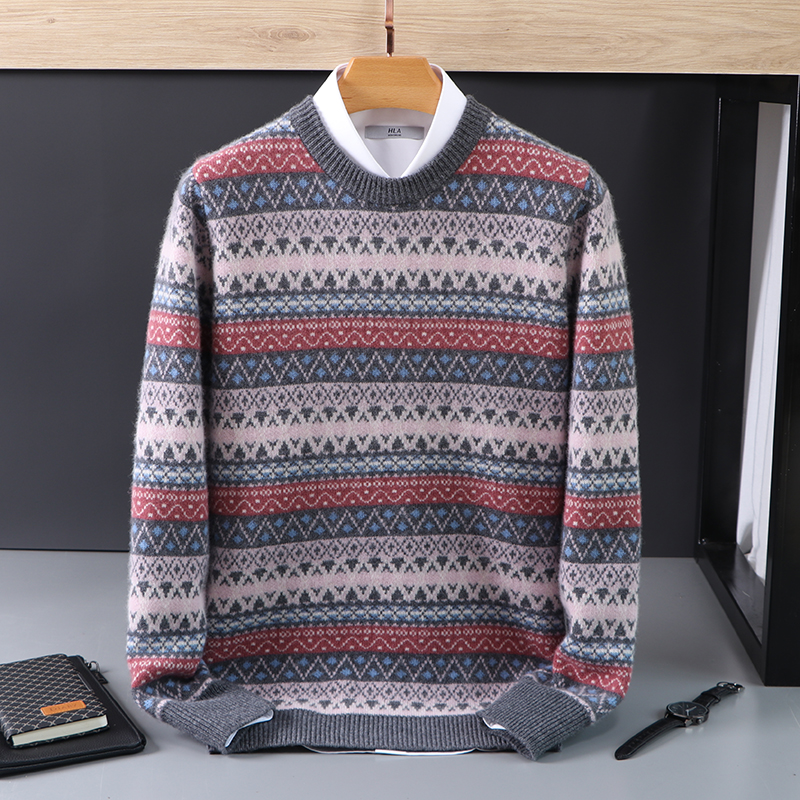 圆领的设计,修饰颈部线条,宽松的版型,不挑身材,穿着舒适自在,撞色的条纹,丰富衣身结构,上身休闲时尚。