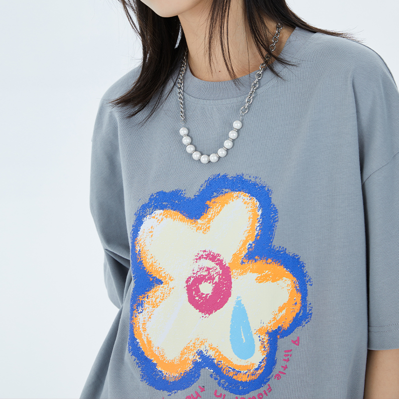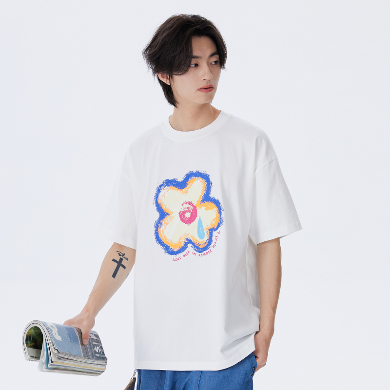 这款时尚休闲风的短袖T恤,精选优质纯棉面料打造,舒适透气,柔软亲肤。撞色的印花图案,打破纯色的单调性。