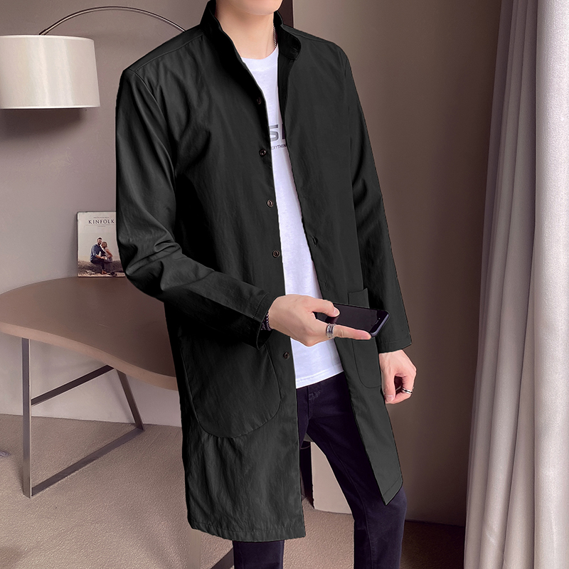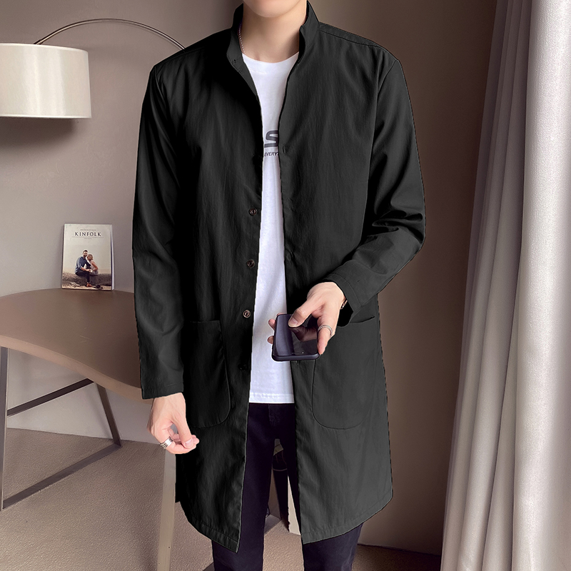 中长款的风衣版型,上身效果很好,很显瘦,立领的设计,修饰颈部线条,宽松的版型,不挑身材,穿着舒适自在。