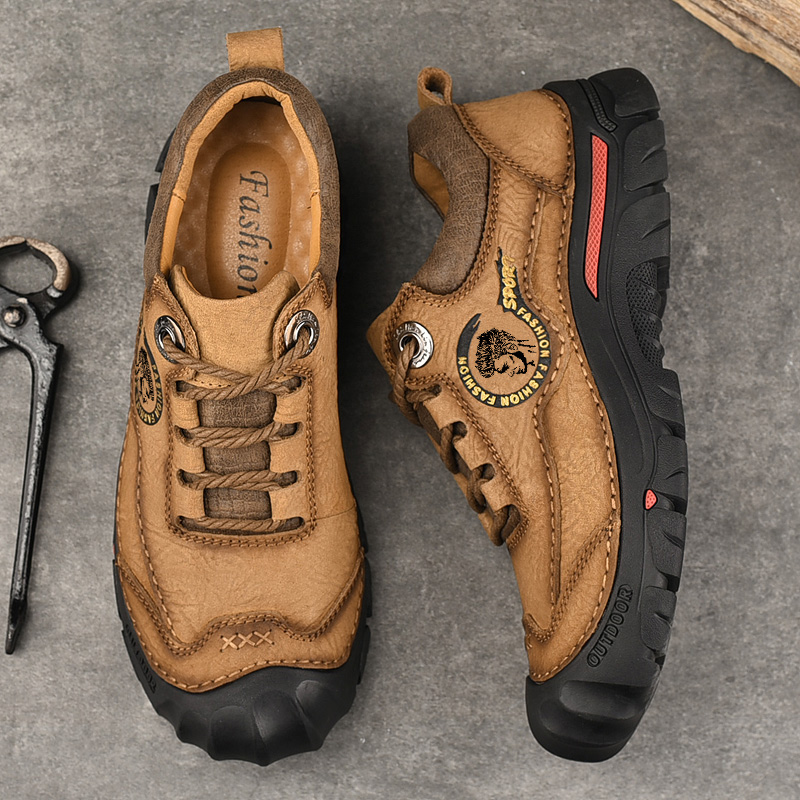 采用头层牛皮,舒适透气,耐磨耐穿,鞋底采用橡胶大底,防滑耐磨,让你的双脚更加舒适。
