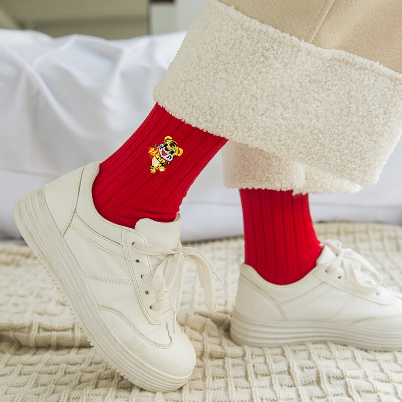 采用了经典的条纹元素,搭配上精致的刺绣,让袜子更具时尚感。