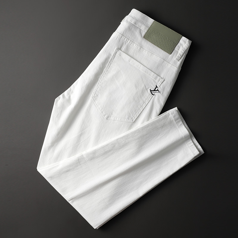 经典的白色牛仔裤,搭配上精致的刺绣图案,让裤子更显时尚感。