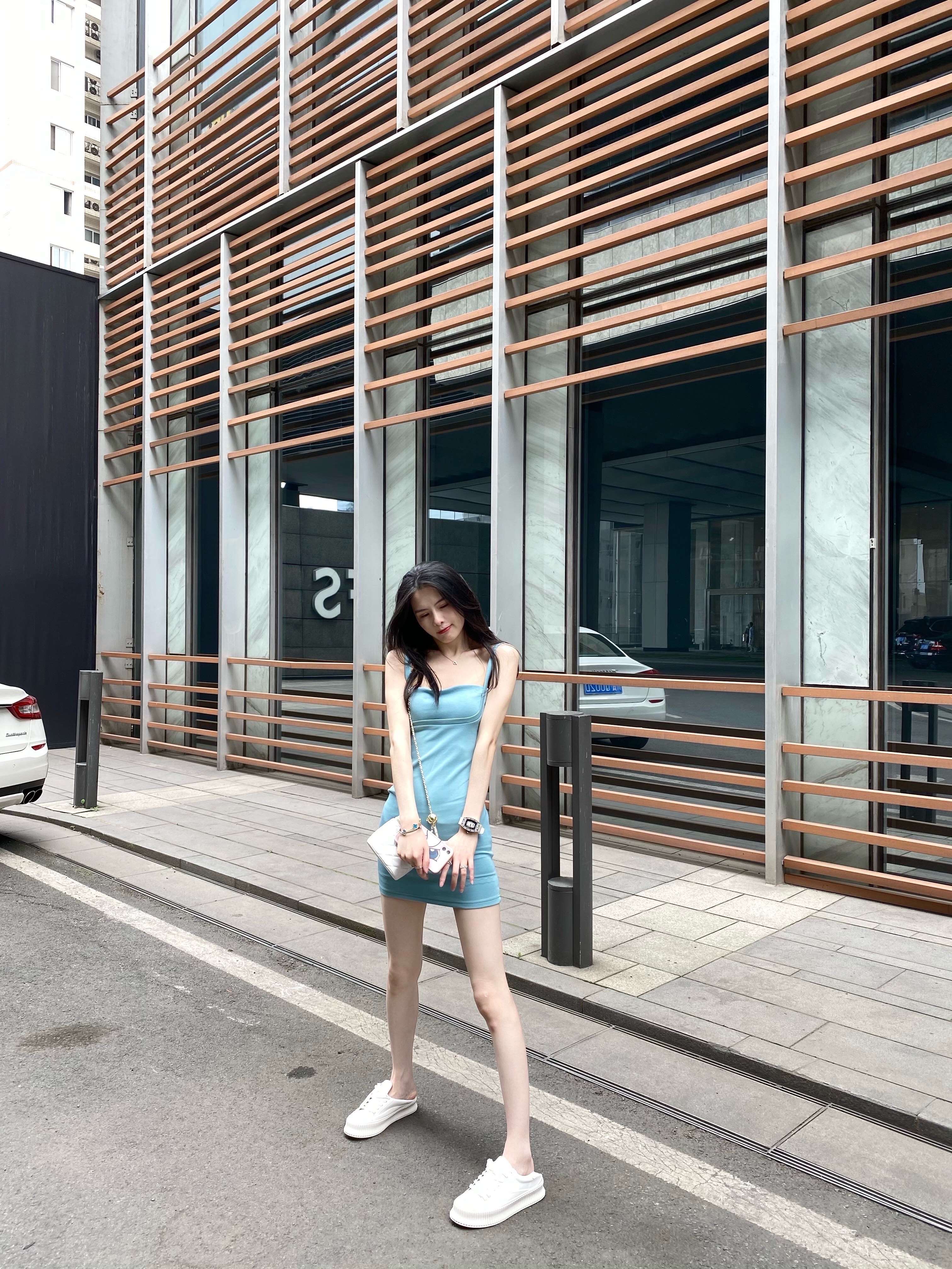 简约的高腰设计,搭配上修身的版型,上身显瘦又显高。
