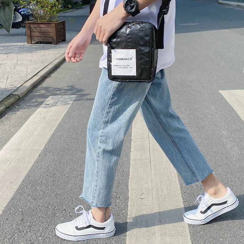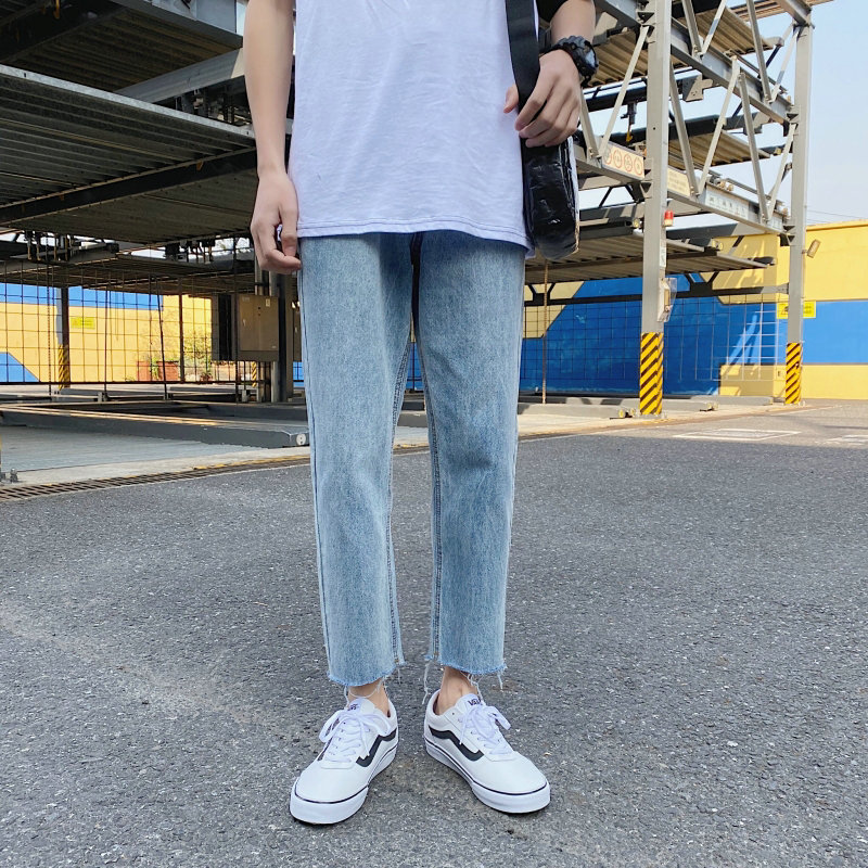 高腰设计,拉长身材比例。高腰牛仔裤,显瘦显腿长。直筒裤型,修饰腿部线条。