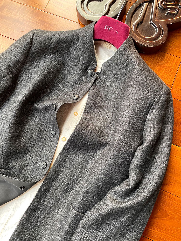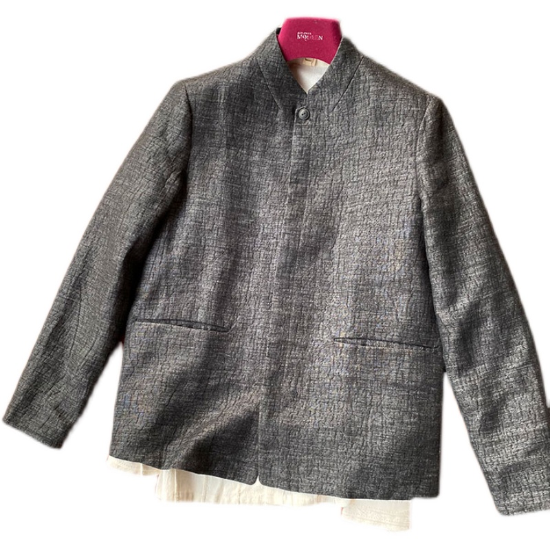 夹克采用了棉麻面料,手感柔软舒适,具有良好的透气性,穿着舒适衣身的印花图案,丰富了整体的层次感,更显时尚潮流。