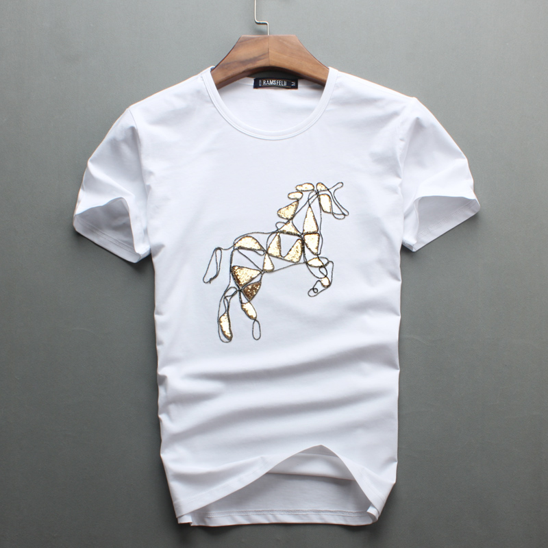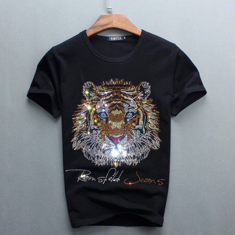 胸前烫钻设计,个性时尚,修身版型,凸显身材曲线,黑色的色调,经典又百搭,宽松T恤,让你轻松驾驭。