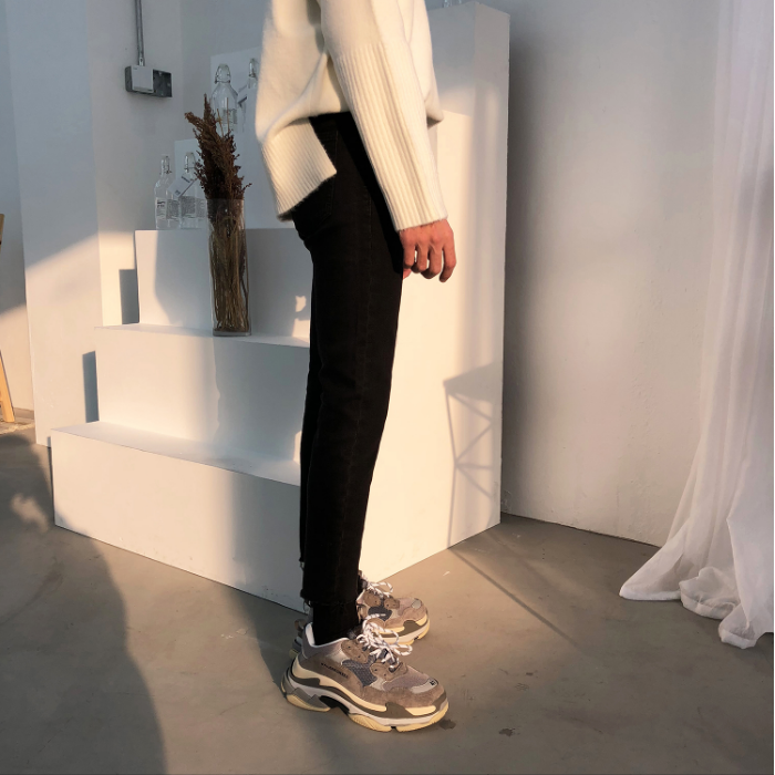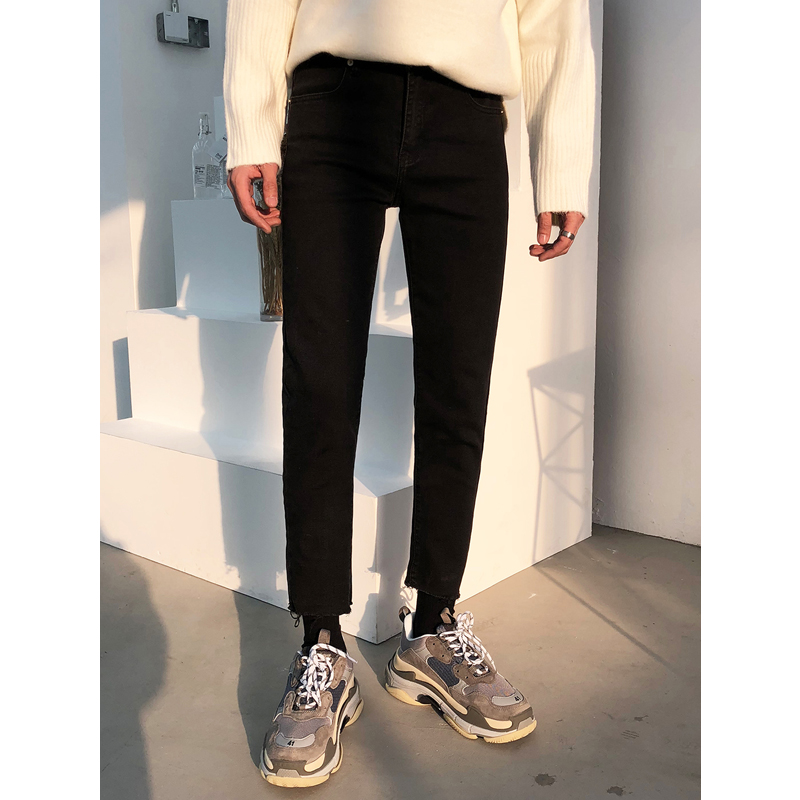 修身的版型,上身效果很好,很显瘦,裤脚的毛边设计,更显时尚潮流。