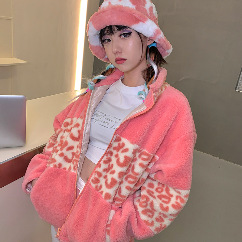 豹纹元素,彰显野性魅力,短款外套,拉长身材比例,豹纹拼接设计,个性时尚。