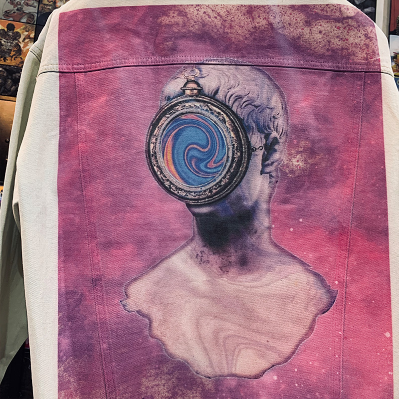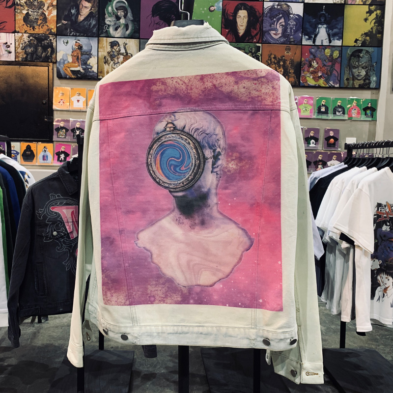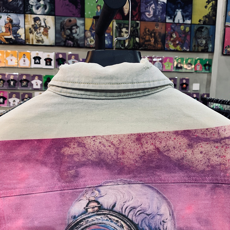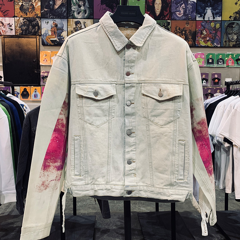 牛仔外套,经典的翻领设计,简约大方,胸前的字母印花,增添了几分时尚感,宽松的版型,穿着舒适自在。
