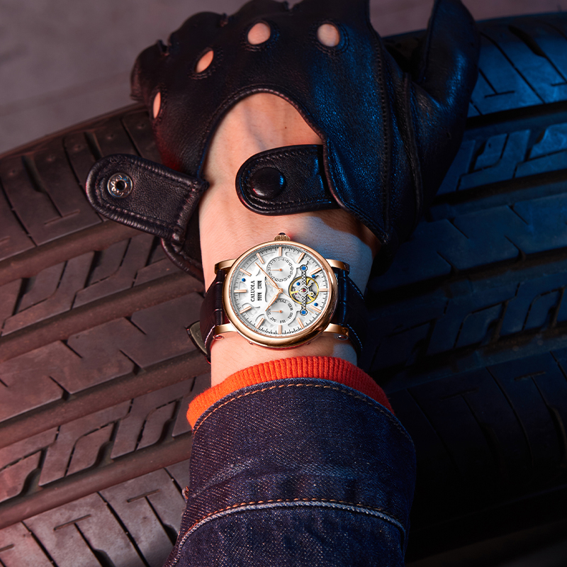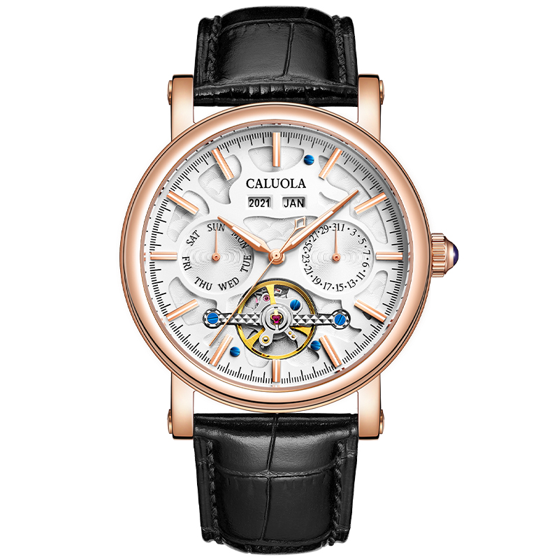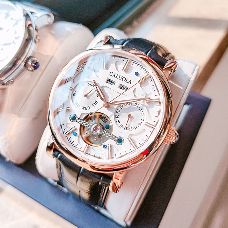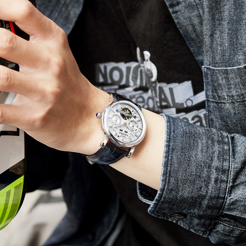 卡罗莱 全自动机械表,采用人工合成蓝宝石镜面,耐磨防刮,不锈钢表壳材质。
