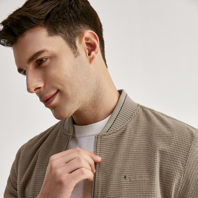 灯芯绒面料,手感柔软,挺括有型,经典的棒球领设计,修饰颈部线条,彰显男士的干练气质宽松的版型,穿着舒适自在。