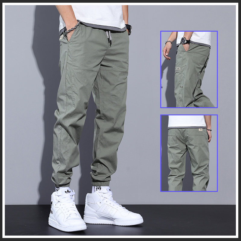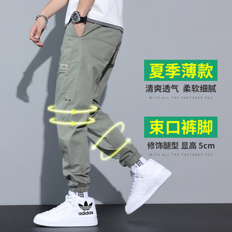 九分裤长,露出纤细脚踝。多口袋设计,工装风十足。