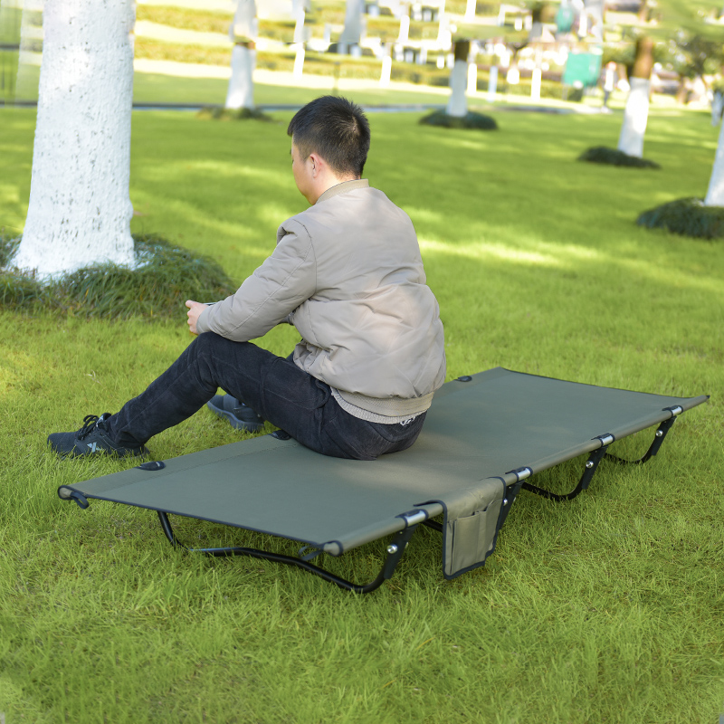 此款折叠床采用铝合金材质制作,具有很好的承重性能,可折叠设计,便于携带。