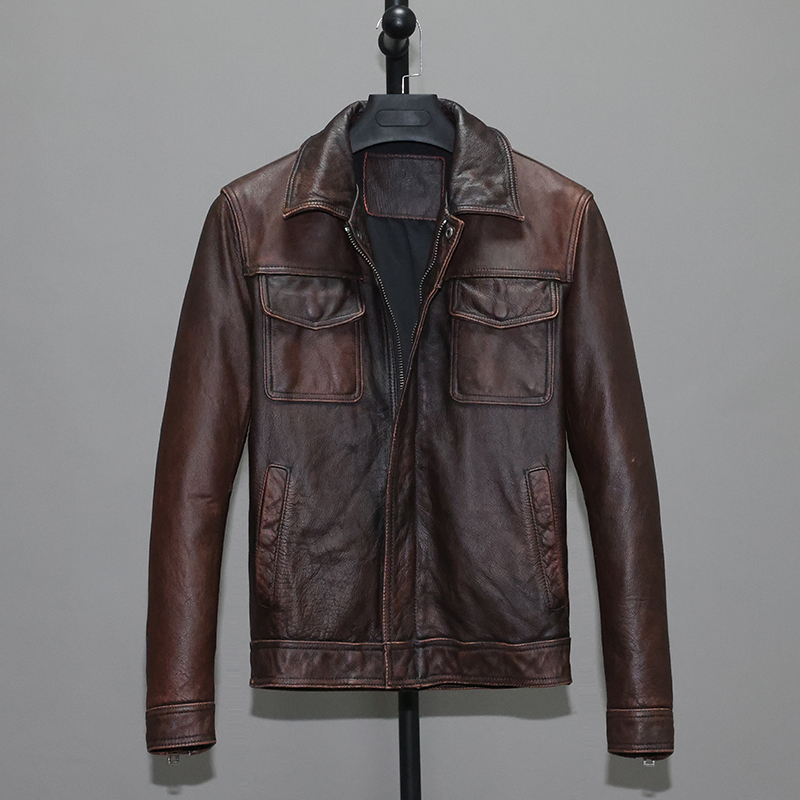 翻领设计,凸显男士魅力。短款外套,拉长身材比例。经典复古风格,时尚百搭。