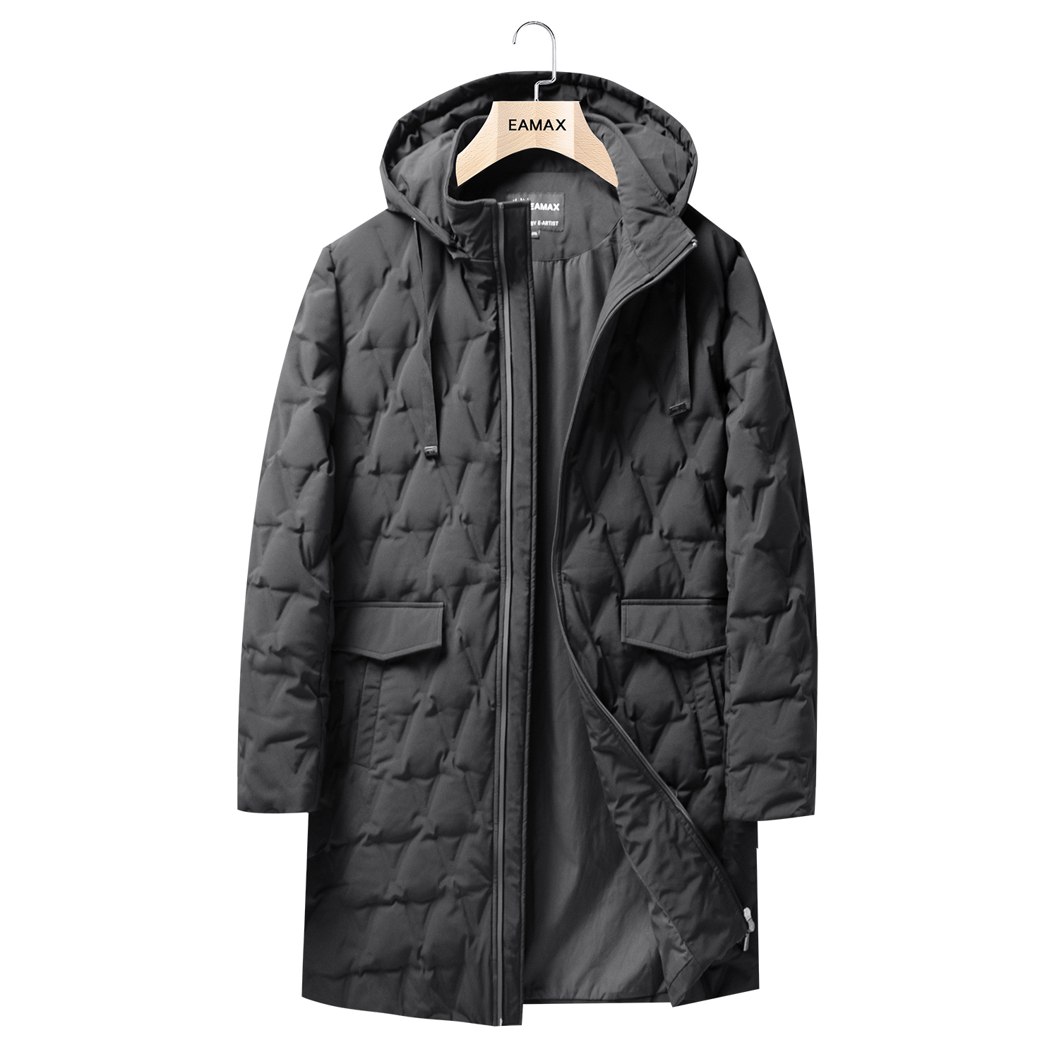 连帽的款式,时尚又保暖。中长款羽绒服,保暖舒适。宽松版型,穿着舒适自在。