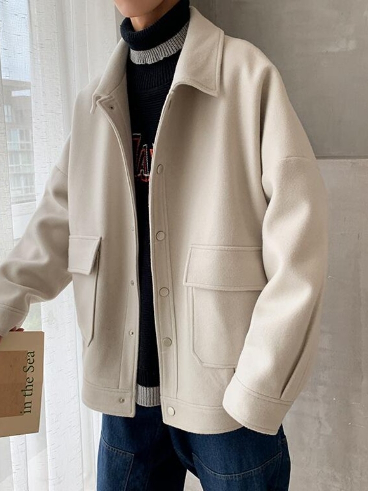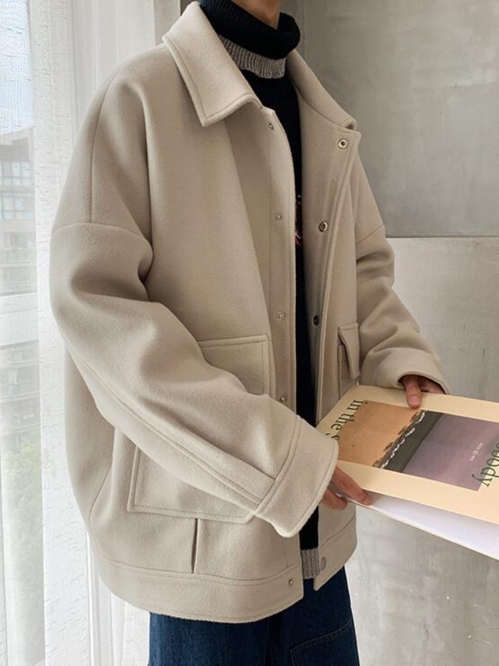 潮男超爱的一款毛呢大衣,短款的版型设计,完美拉长腿部的曲线,穿上增添了几分随性大方的意味。
