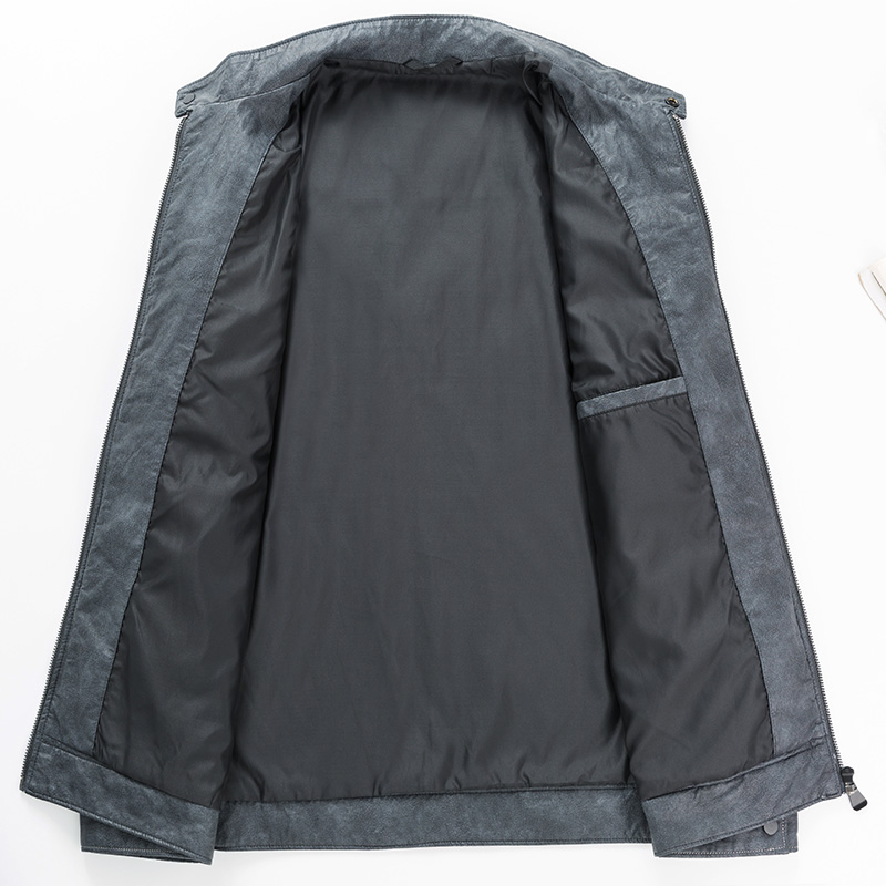 这款皮衣采用了优质的绵羊皮材质,手感柔软,穿着舒适,修身的版型,上身效果很好,搭配上一条牛仔裤,尽显男士的帅气魅力。