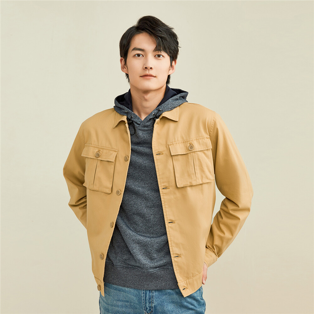 经典工装风格,时尚百搭。短款外套,拉长身材比例。多口袋设计,工装风十足。