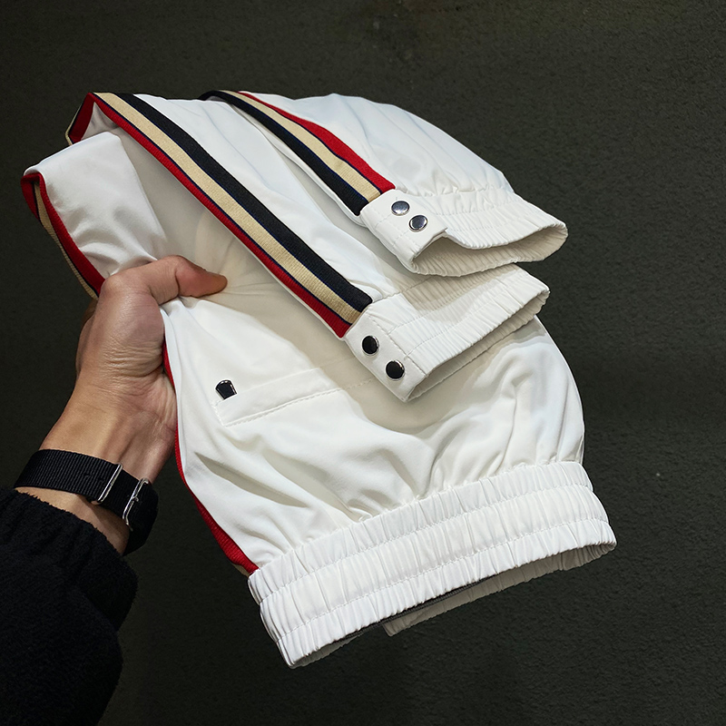 肩处撞色条纹的点缀,打破原本的单调,为整体带来更多的吸睛力,袖口处收紧的造型,紧贴手腕肌肤,能够起到更好的防风作用。