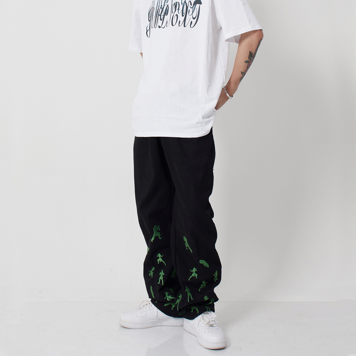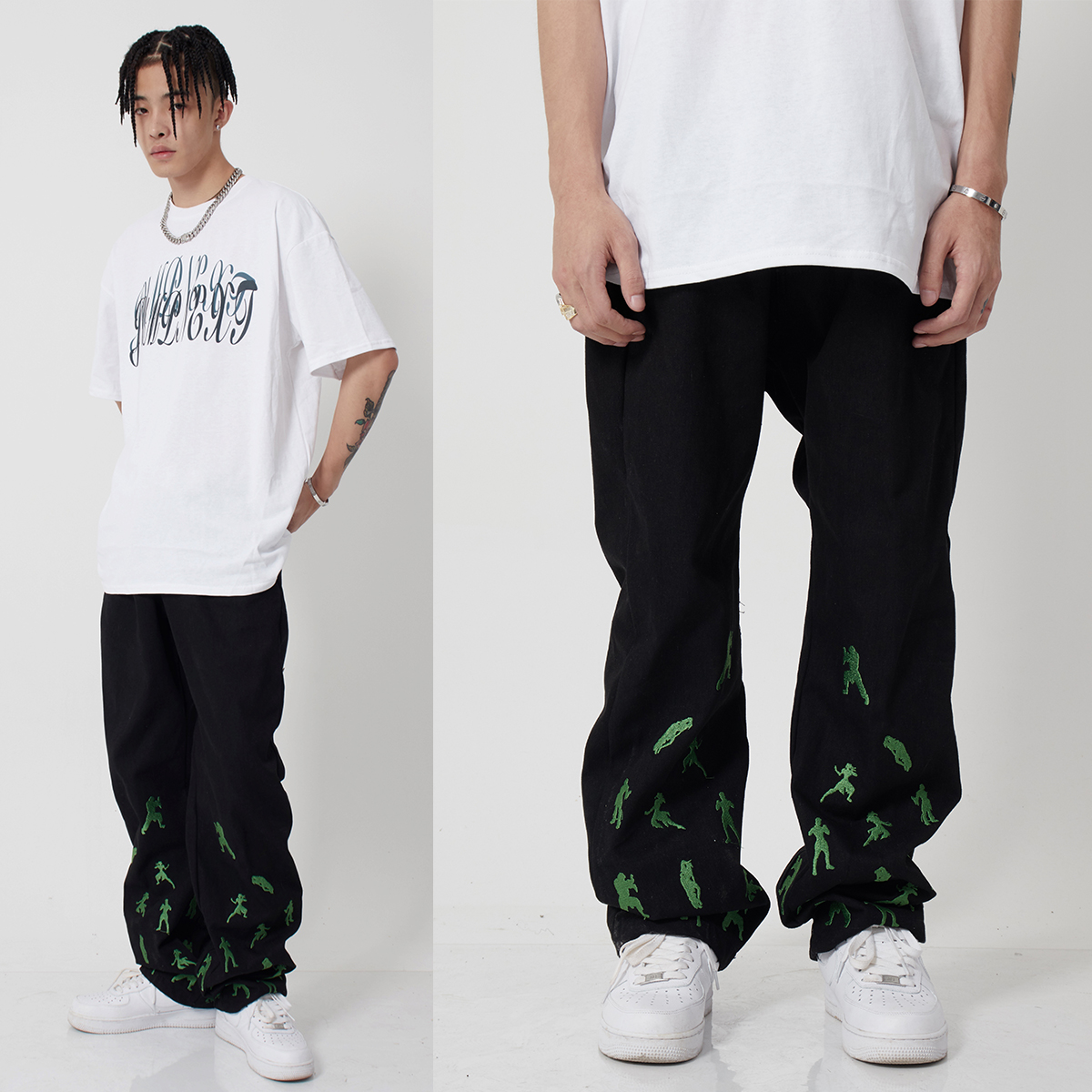 裤子采用了经典的直筒版型,上身效果非常好,搭配上宽松的版型设计,穿着舒适自在,同时也能修饰腿型,让你轻松穿出潮男范。