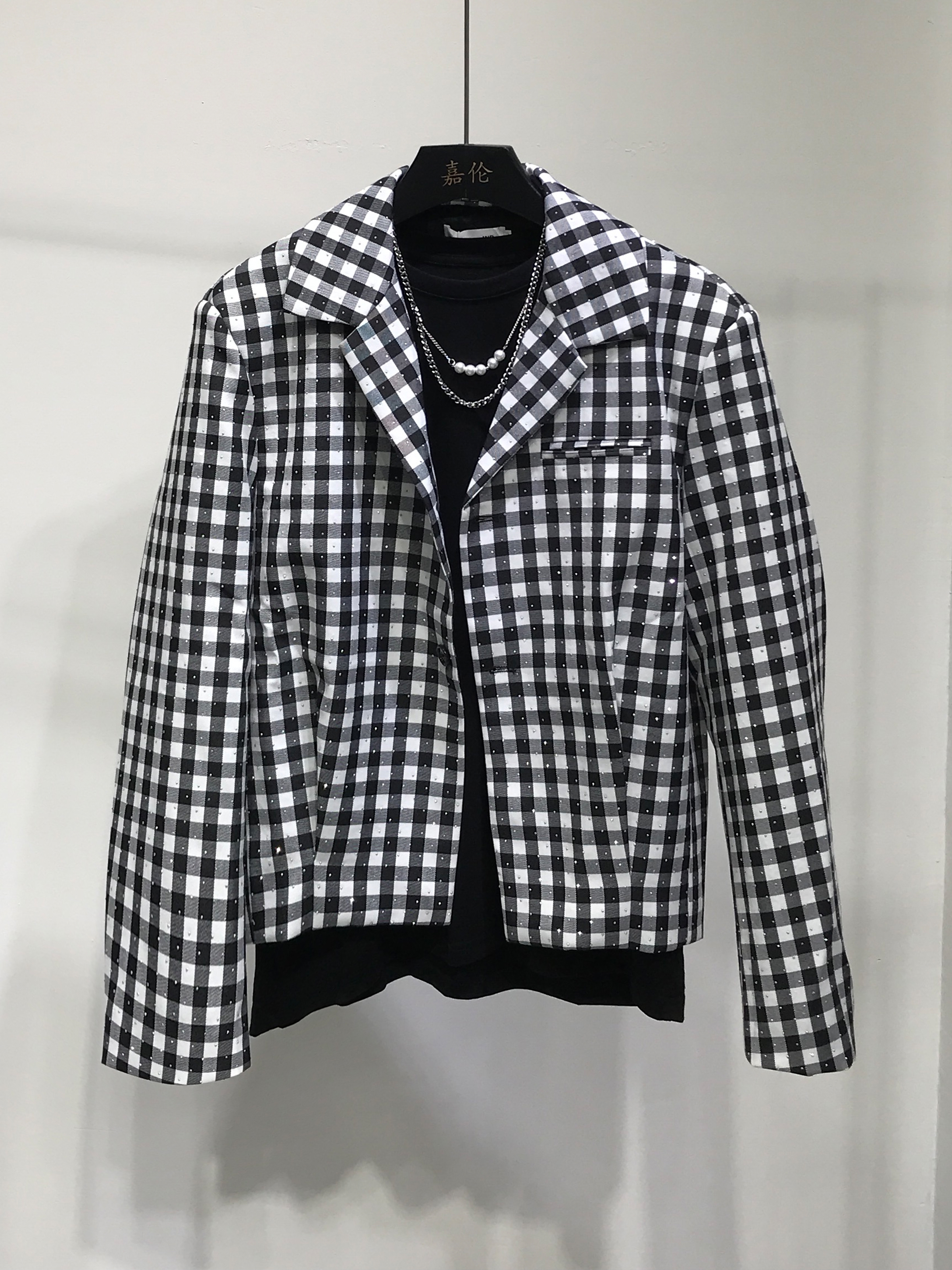短款版型,拉长身材比例,西装翻领,修饰颈部线条,经典复古风格,时尚百搭,长袖设计,修饰手臂曲线,短款外套。