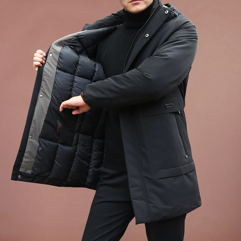 中长款的版型,很好的修饰了身材比例,连帽的设计,更显时尚感。