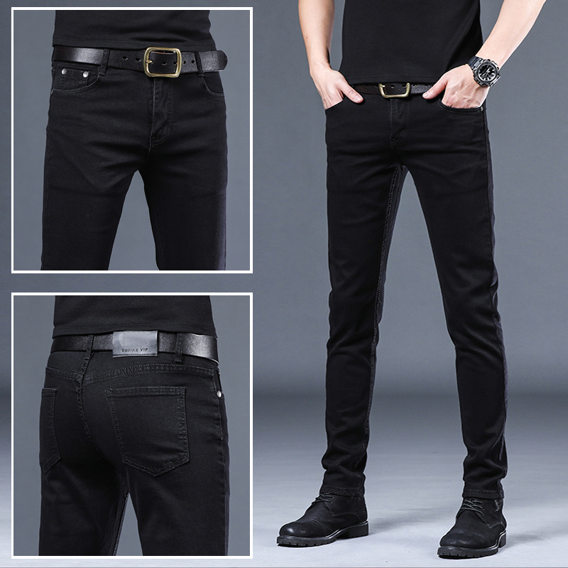 修身版型,让你轻松驾驭。牛仔裤,穿着舒适不紧绷。黑色的色调,经典又百搭。