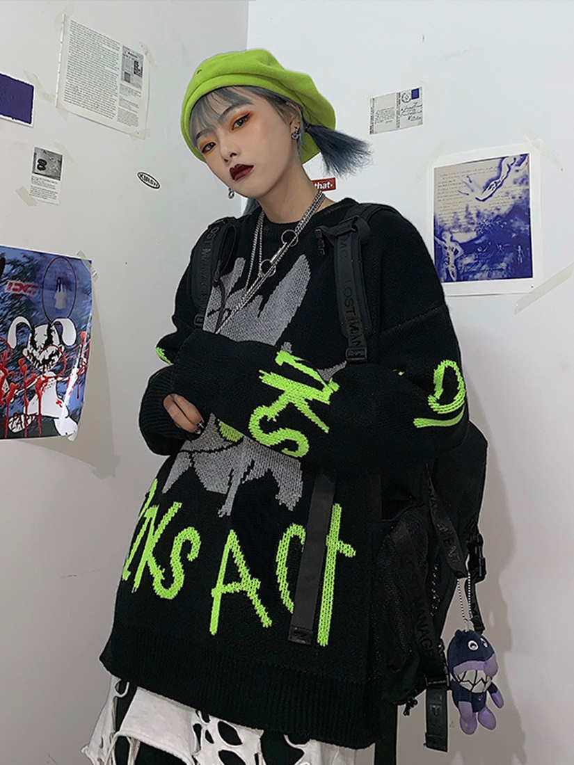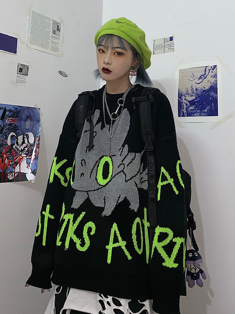 这款毛衣的版型很好看,卡通动漫图案特别可爱,不显肩宽,穿上之后特别显瘦。穿上之后潮流感十足,特别酷的一件毛衣。